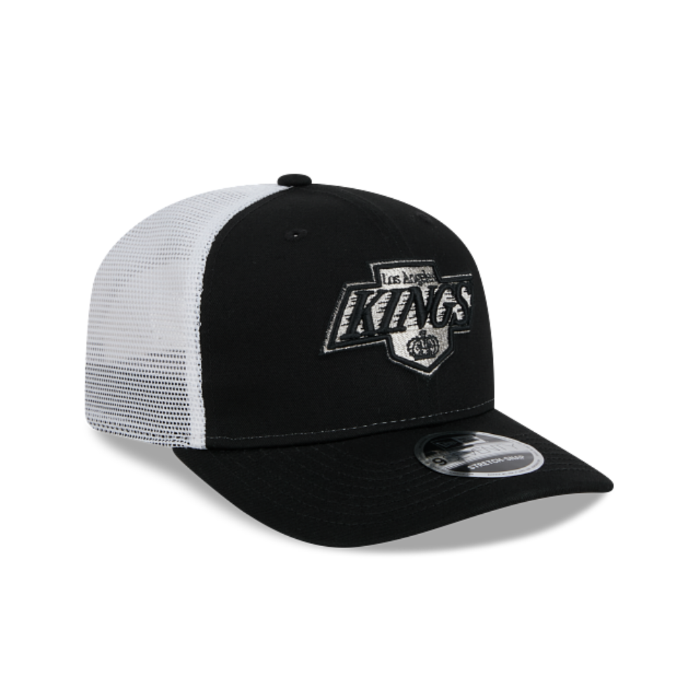 Bring that Kings energy with this sharp New Era 9SEVENTY trucker snapback in black and white. The embroidered Kings logo pops against the classic colorway, giving you that clean, timeless hockey look that works anywhere. Adjustable snapback closure means one size fits all, while the breathable mesh panels keep your head comfortable whether you're courtside or cruising the streets. Perfect for die-hard fans who want to rep LA hockey with style and swagger.