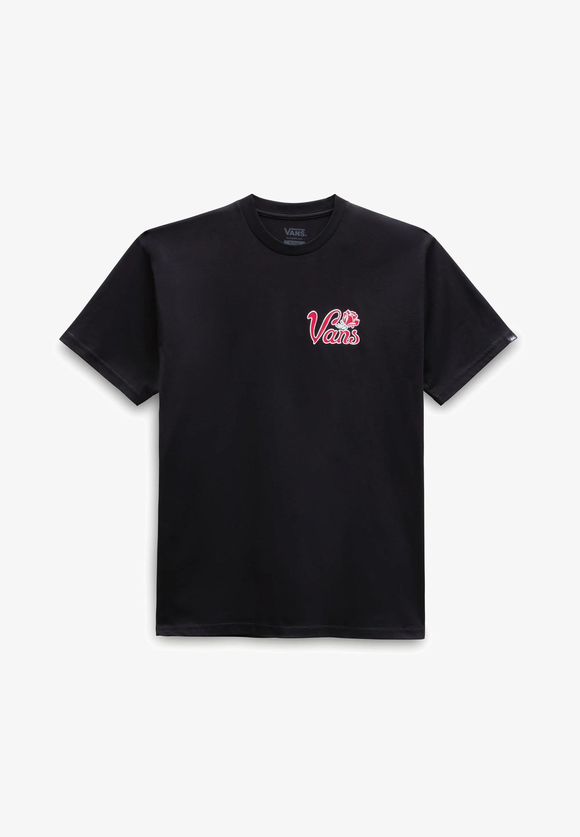 Get ready to parade around in style with the Vans Pasa Tee in black. Made from a heavyweight cotton fabric, this classic fit t-shirt features a bold Vans logo on the front and a striking parade of roses graphic on the back. Perfect for everyday wear, this short sleeve crewneck tee is sure to make you stand out.